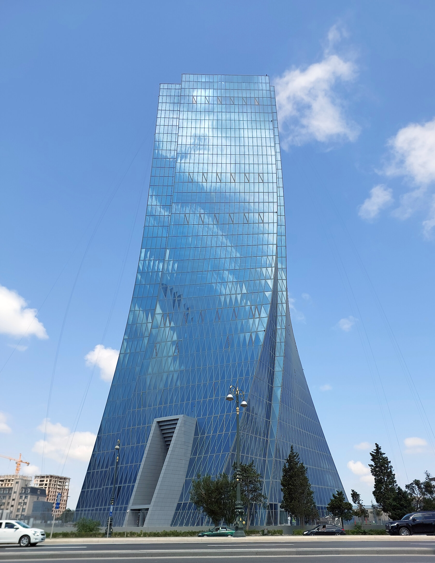 The design of the Central Bank of Azerbaijan in Baku takes the economical high-rise typology as a starting point. The East-West oriented slab and its polygonal geometry rises then into a sculpturally twisted volume, glazed from top to bottom and open to its surroundings. The client asked for a symbolic building, open and light, to replace the hermetically-sealed structure of the former Headquarters.