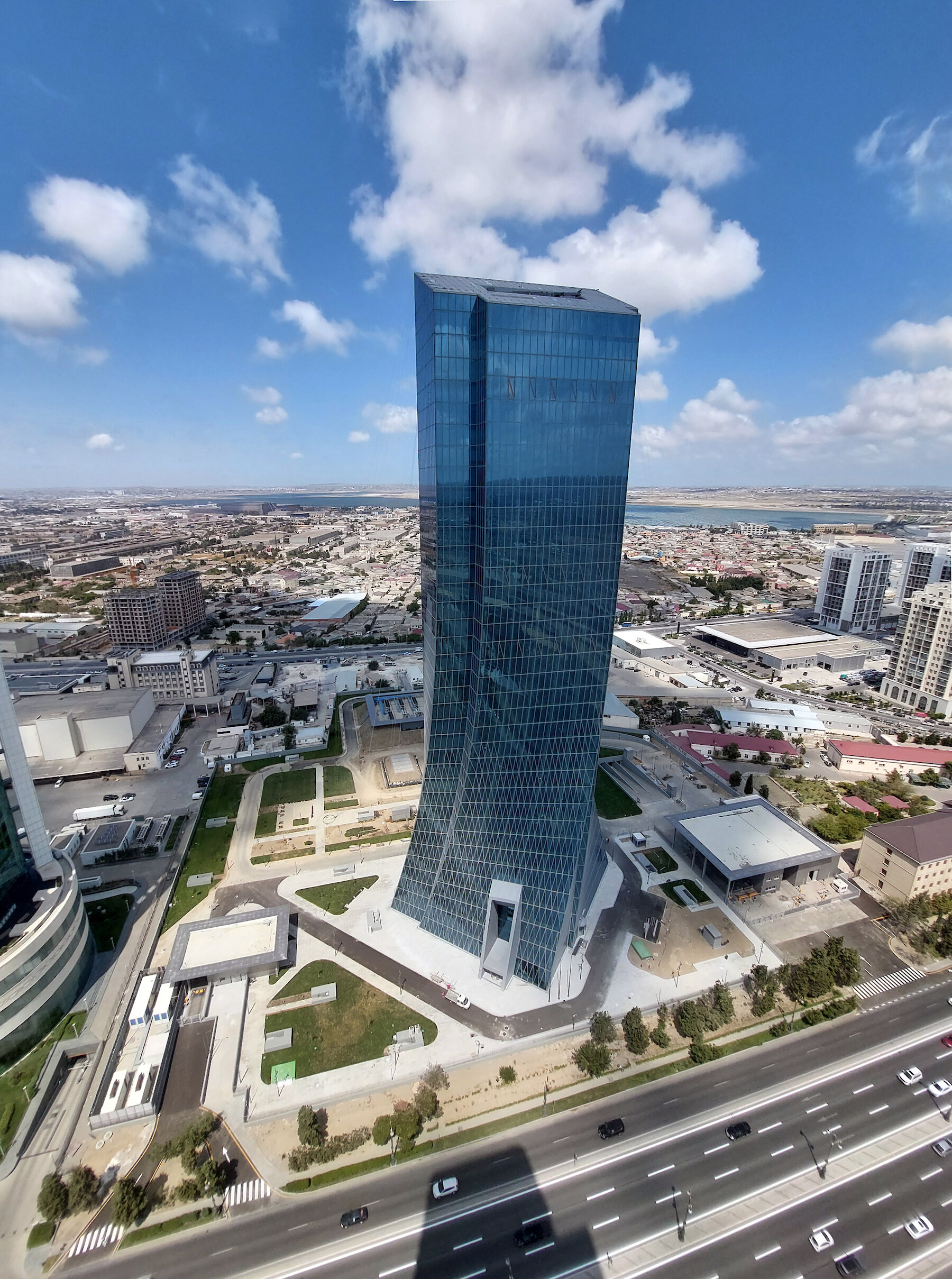 Situated on the Heydar-Aliyev Avenue, the 164 meters tall tower becomes a highly visible landmark of the capital city, a significant point of reference in the Baku skyline. Two other iconic buildings of modern Baku are located further South-West, on the same main road: the Baku Convention Center designed by Coop Himmelb(l)au (2015), and Zaha Hadid’s Heydar Aliyev Center (2012).