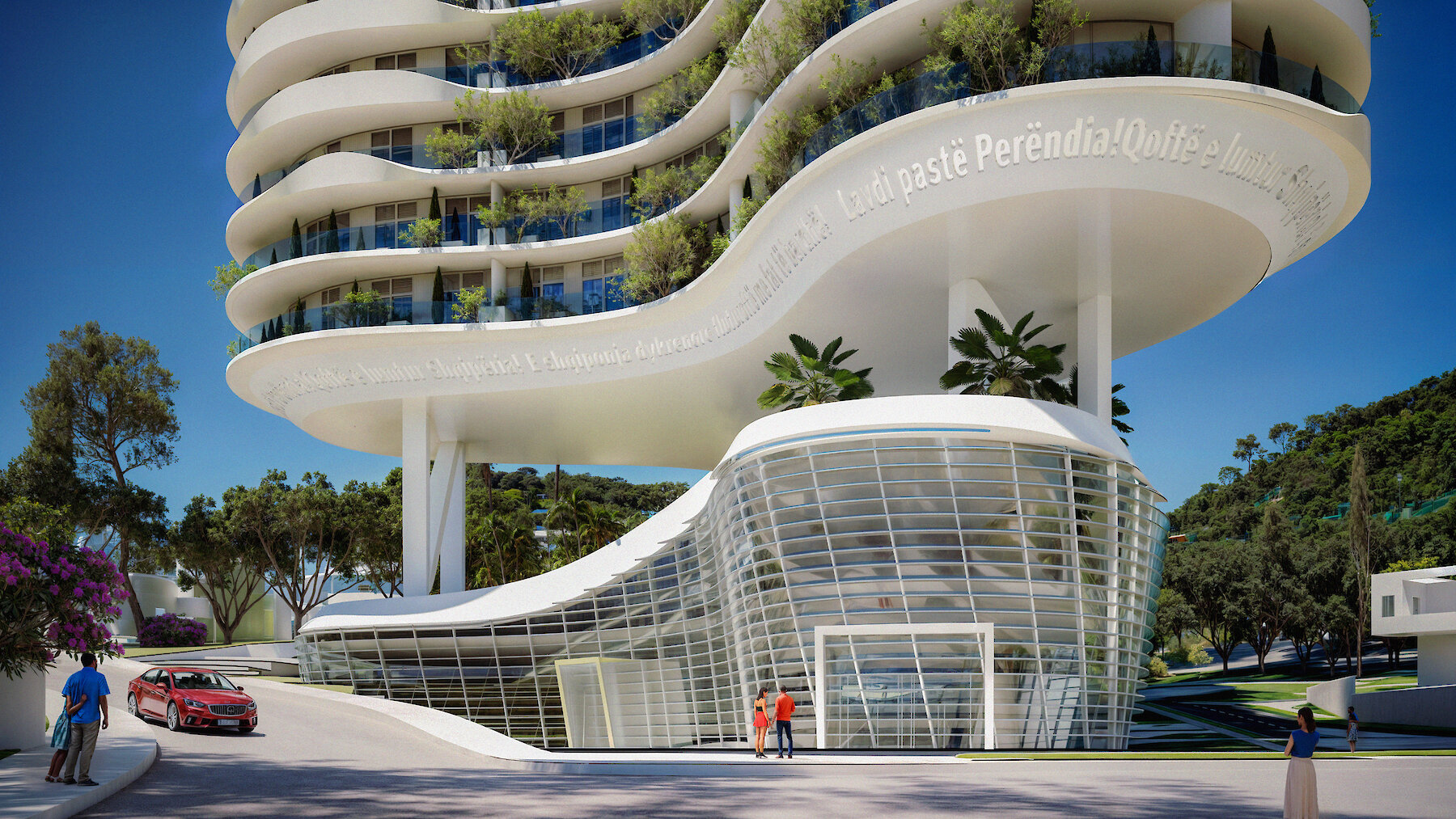 The Luzaj Towers are situated in the southern part of Vlorë, between the mountains and the sea. The project comprises a pair of towers, accommodating both residential and hotel functions.